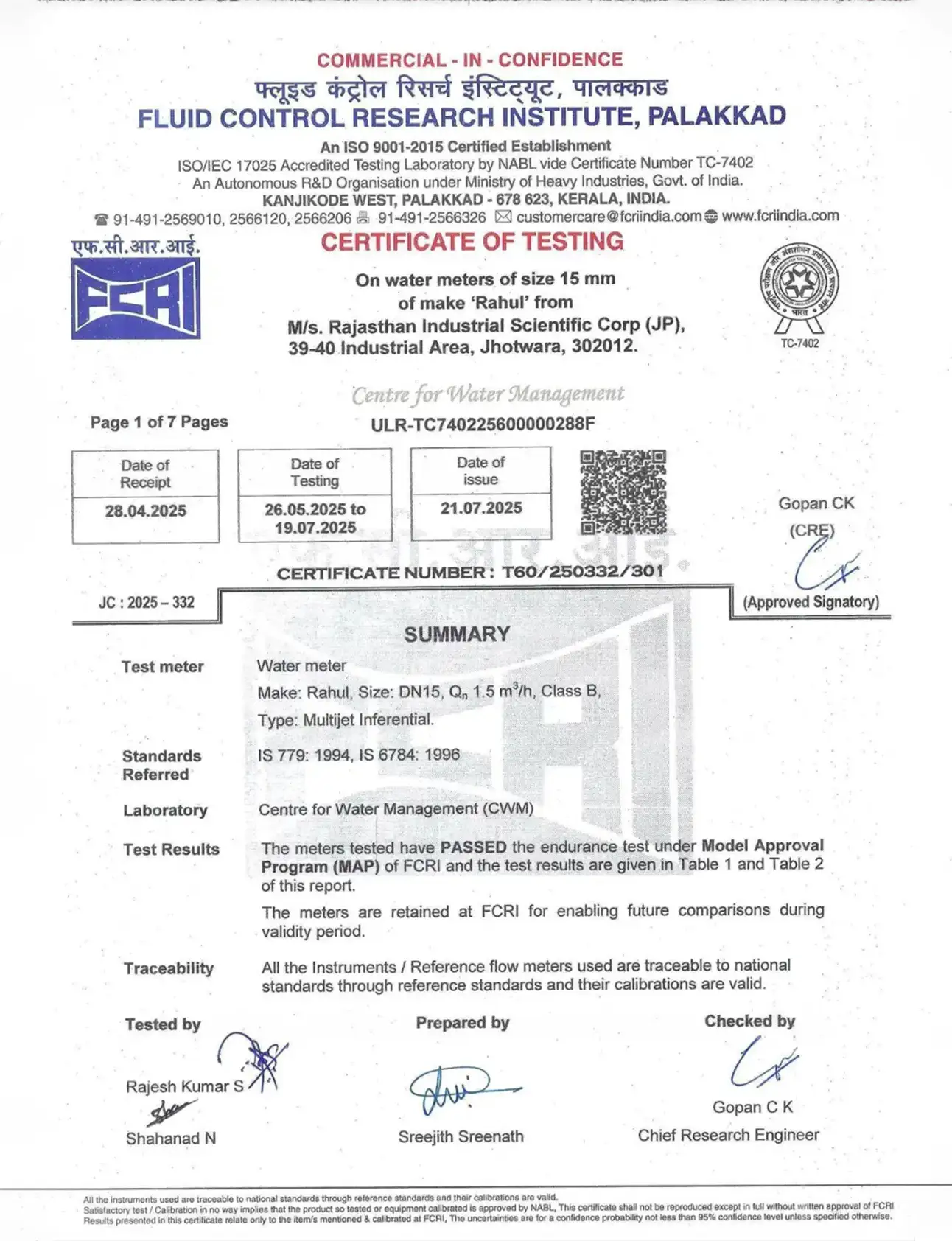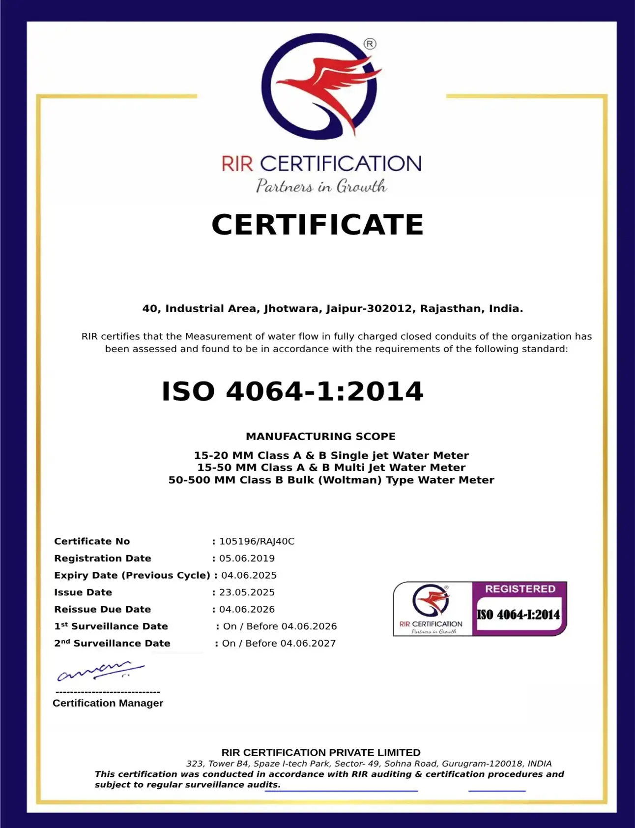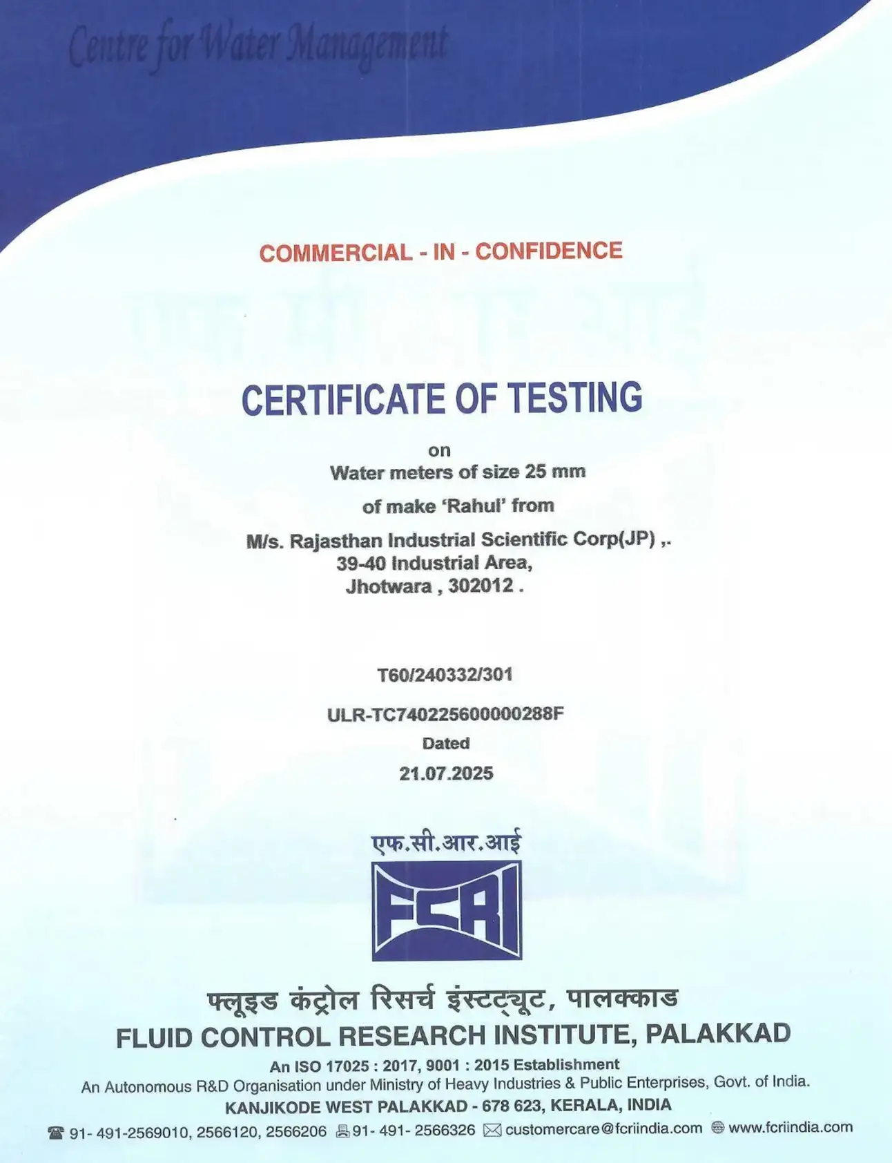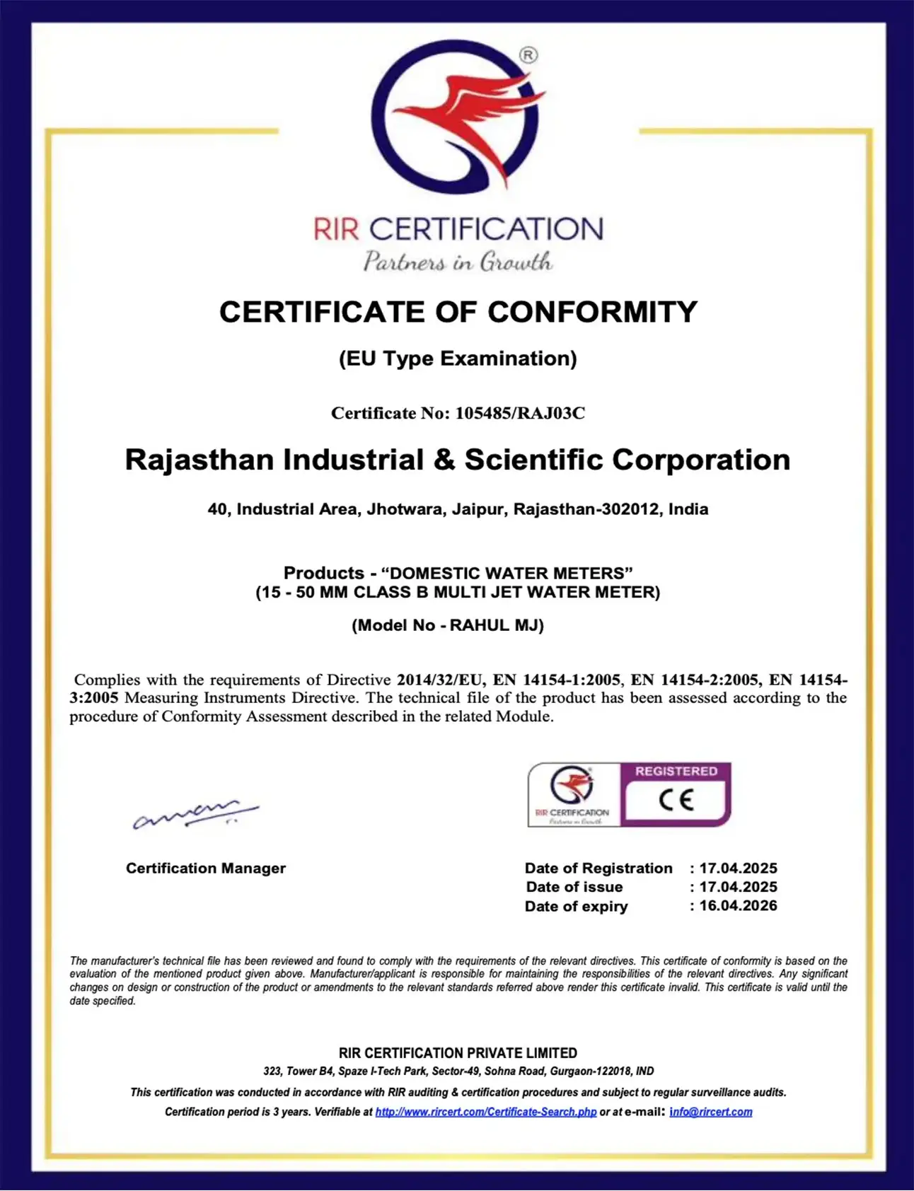 At Rahul Water Meters, quality, compliance, and reliability are at the core of everything we do. Our products are backed by all necessary national and industry-standard certifications, ensuring they meet the highest benchmarks for performance and safety. These certifications reflect our commitment to excellence and our focus on delivering trusted solutions for water management projects across the country.